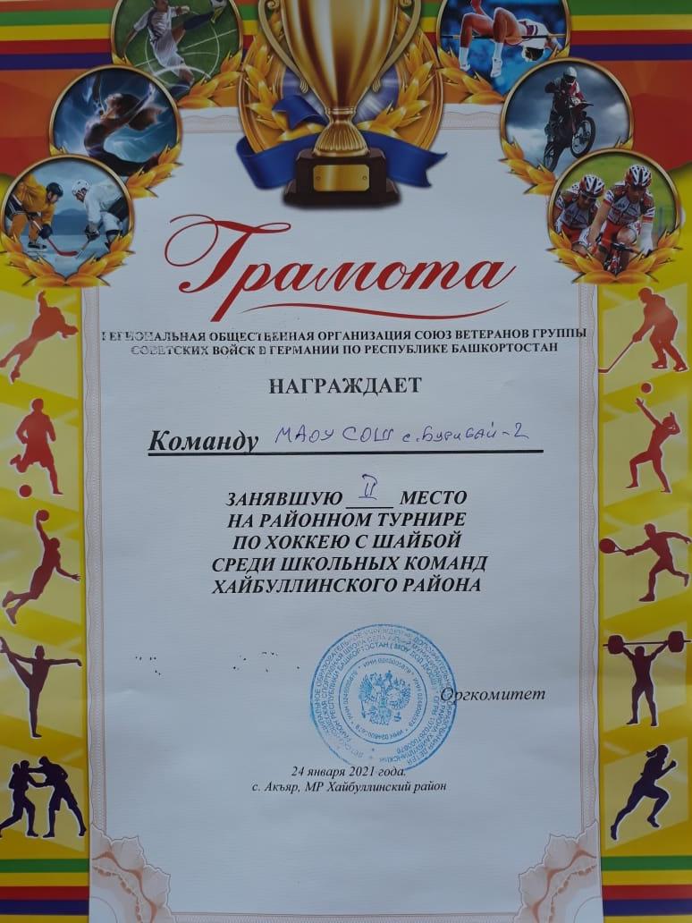 В честь открытия Месячника на ледовом поле МБОУ ДОД ДЮСШ с.Акъяр состоялся турнир по хоккею на приз «Ветераны ГСВГ», где команда хоккеистов нашей школы заняла 1 место.
